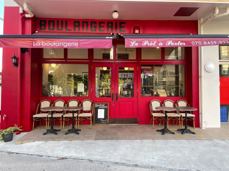 那覇市のうれんプラザの隣にある真っ赤な外観が特徴のブーランジェリー「プレタポルテ」。店内に入ると目の前には、ハード系のパンをはじめ、ベーグルやタルトなど、ひとつひとつ丁寧に素材を活かして焼き上げられたパンがショーケース内に並びます。ハード系のパンは、ワインと一緒に味わうのもおすすめです。