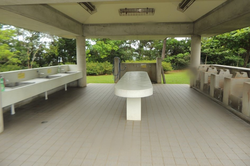 それでは、沖縄アウトドアキャンプがどんな様子なのか沖縄本島北部にある「東村村民の森 つつじエコパーク」を見てみましょう。まずは、入口からチェックイン受付までです。バンガロー・PA宿泊棟の宿泊については、宿泊者全員分の氏名・住所が必要となります。事前に宿泊者名簿を入力して送信して頂くと当日のチェックインがスムーズになります。