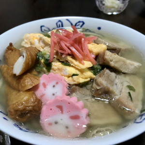 我が家のおそばは、揚げかまぼこや三枚肉(ラフテー)、ヒラヤーチー(平焼き)した錦糸卵に、干支のイラストが可愛いかまぼこなど、味はもちろん見た目も楽しい、にぎやかな年越し沖縄そば!今年最後の瞬間に、具沢山で贅沢なおそばを食べると縁起がよさそうな気がします。