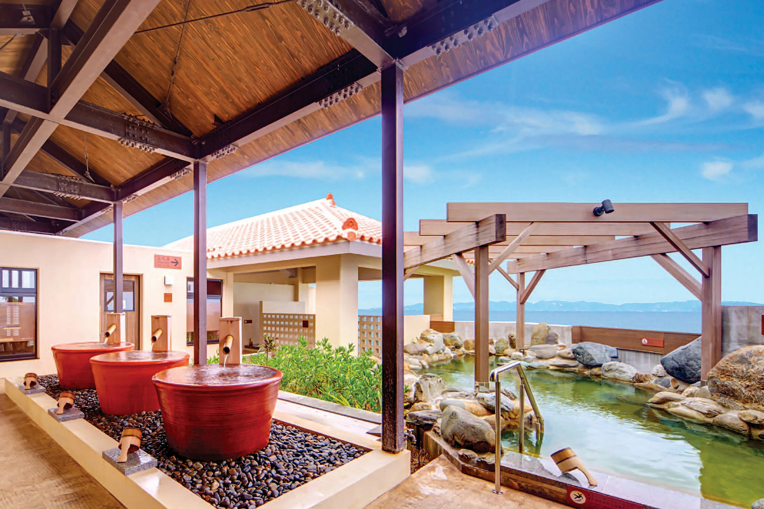 深いリラクゼーションに浸れる天然温泉は、地下800メートルから、約800万年前の化石海水が地熱で温められて湧き出る、いわば沖縄の海の恵み。本土に多い火山性の温泉とは成分が異なります。