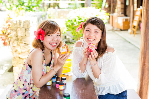 本島中部の読谷村にある「琉球村」は、琉球王国時代の生活模様が再現されたテーマパークです。園内では、芸能パレードの道ジュネーやエイサー演舞、民謡・芸能ショーの披露をはじめ、三線教室や紅型、藍染め、織物、シーサー色付けなどの工芸体験や、沖縄のお菓子”サーターアンダギー”作りなど種類豊富な体験を楽しむことができます。また、雨の日でも楽しめる体験も多くあるため、天候を気にせず満喫できます。