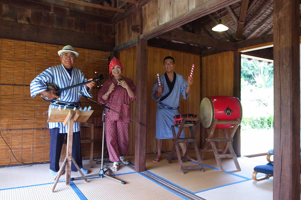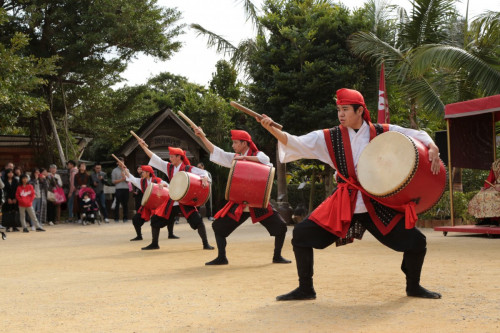 海洋博公園内にある「おきなわ郷土村 おもろ植物園」は、17~19世紀の沖縄の村落を再現されたエリアとなっています。赤瓦屋根を使用した沖縄の伝統的な民家で、地元のおばあたちと三線や踊り、ゆんたく(おしゃべり)が楽しめる「昔のおきなわ生活体験」が毎日無料で開催されています。また、おもろ植物園には沖縄最古の歌謡集「おもろそうし」に登場する植物が植栽展示されています。