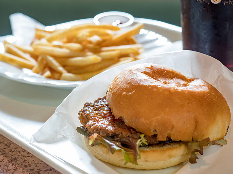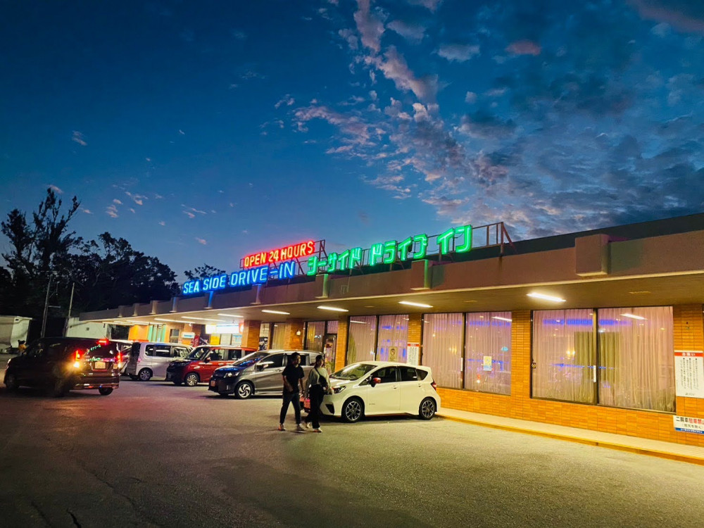 夜のドライブコースとして県民から大人気で、若者が免許を取るとまずはドライブコースの目的地としてここに来ると言われるほど定着している「シーサイドドライブイン」。大きく書かれた店名が特徴的なネオンサインやレストラン内に展示されている昭和のおもちゃやバイクなど、レトロなアメリカンダイナーを堪能できます。テイクアウトではスープやバーガー、アイスなど気軽に食べられるフードが種類豊富に販売されています。