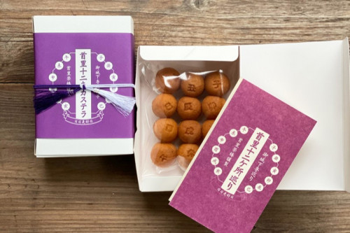一口サイズのふんわり丸いカステラ「首里十二支カステラ」が大人気のお店。築70年、赤瓦屋根が特徴的な沖縄の古民家はレトロで風情が感じられます。「首里十二支カステラ」には小さくて丸い見た目に十二支の文字が書かれており、味はプレーン、冬瓜漬きな粉味、紅芋、粒黒糖、チョコチップのほか期間限定メニューも販売しています。古民家にかけられたのれんや、軒先にいるシーサーもとてもレトロで可愛いですよね。
