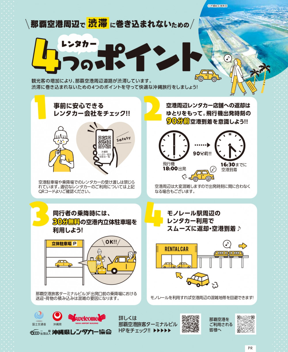 一方で、那覇空港周辺のレンタカー利用には注意が必要です。特にハイシーズンにはレンタカーの利用者が集中し、送迎バスの順番待ちや営業所での手続きに時間がかかり、出発までに2時間以上かかってしまうこともあります。加えて、観光客の増加に伴い、那覇空港周辺の道路は慢性的に渋滞しており、移動に予想以上の時間を要することもあります。
