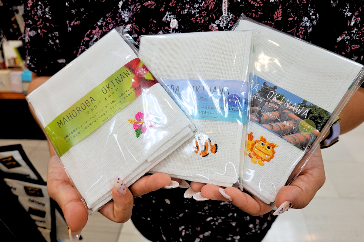 ワンポイントで沖縄らしい刺繍があるものや、前面に沖縄企業ロゴが印刷されたインパクト大なものなど、沖縄のハンカチは種類が豊富!「ちんすこう」や「紅芋タルト」などの定番みやげもいいですが、持ち帰る際かさばらず、普段使いするハンカチは沖縄土産としておすすめですよ。3枚セットになっているお得なハンカチセットもあるので、お配り用のお土産としてもぴったりです。