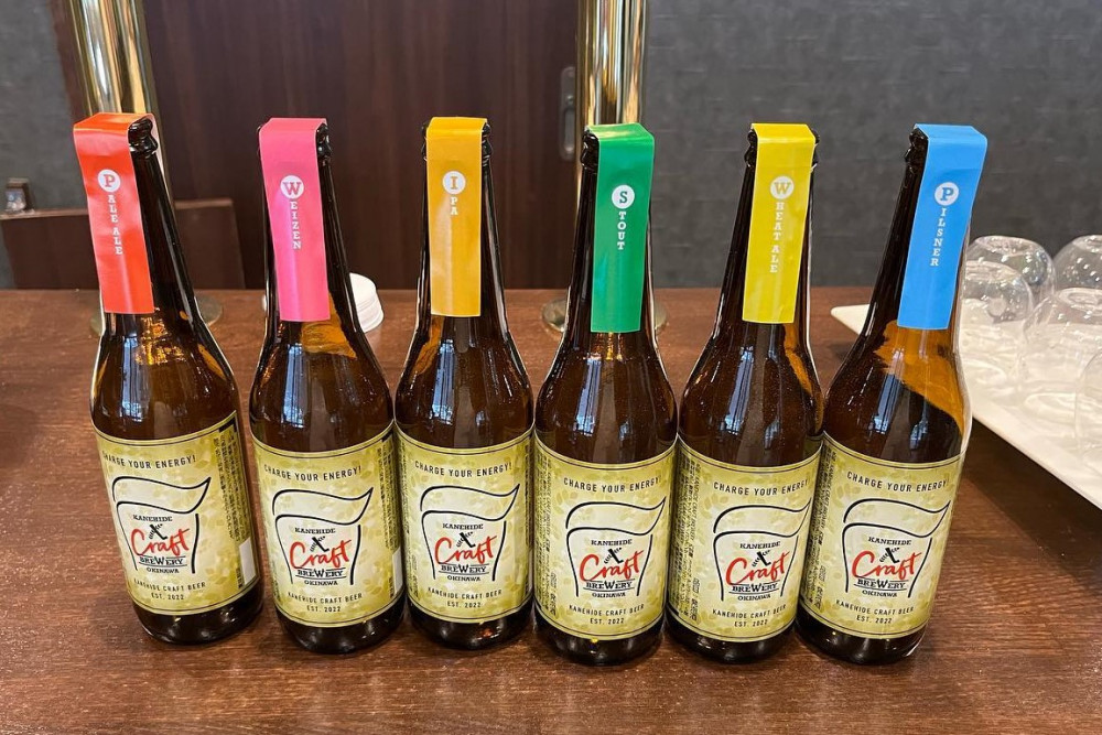 KANEHIDE Craft BREWERY OKINAWAは、「金秀グループ」が手掛けるブルワリー兼Tap roomで、那覇市のオフィス街ビルの一画にある醸造所です。2022年2月に酒類醸造免許を取得し本格的な製造を開始しました。飲食店としての営業許可も取得し、店頭販売や卸売、出荷等を行っています。
