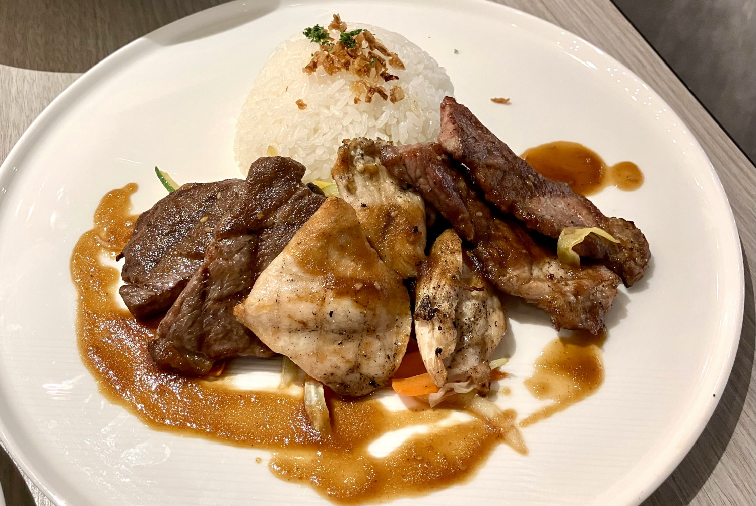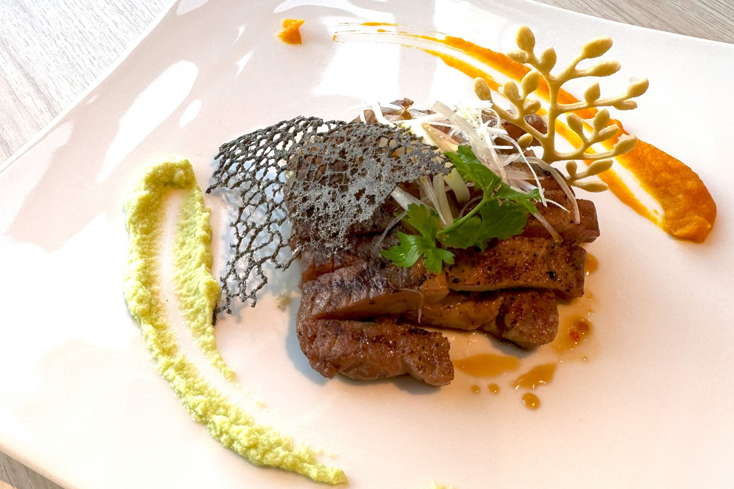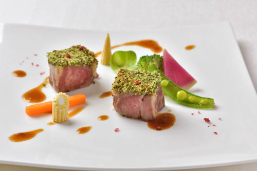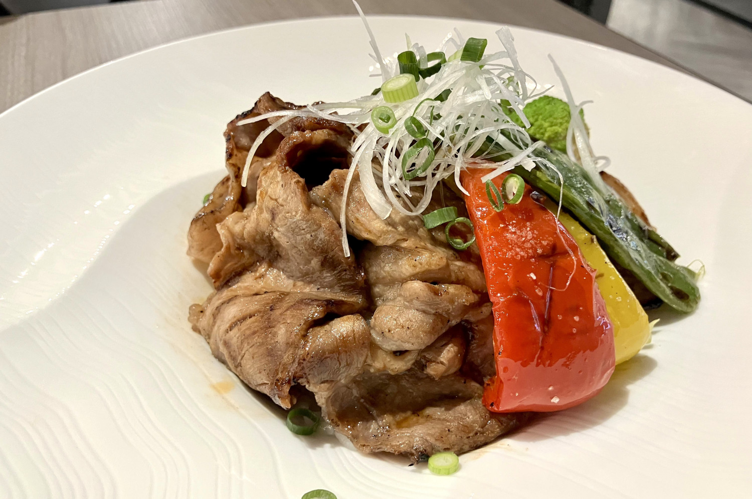 ランチブッフェは、四季折々の食材を利用し、素材の味を生かして調理したや小鉢、金アグー豚を使った料理、ティーチ特製デザート(季節のフルーツ)など、種類豊富です。ハーフランチブッフェ(メイン料理+ビュッフェ)もあり、メイン料理のおすすめは、金アグー豚のステーキです。
