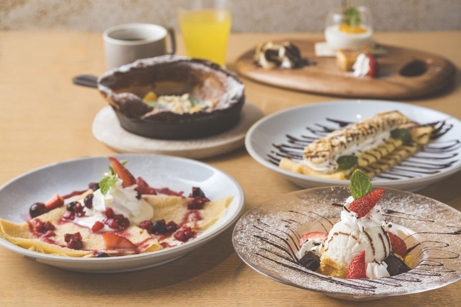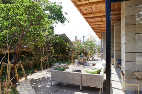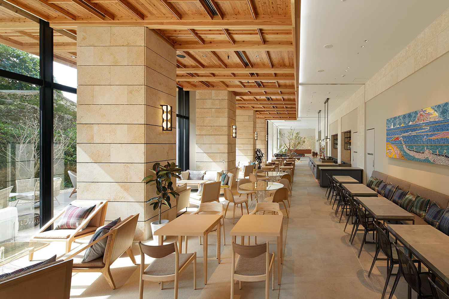 「ホテル ストレータ 那覇」の1FにあるCAFE STRATAは、開放感と緑あふれる空間のカフェダイニングです。店内からは緑豊かな中庭が臨め、ゆいレール美栄橋駅から徒歩30秒という都会のにぎやかさを感じさせない、静かな空間が広がります。