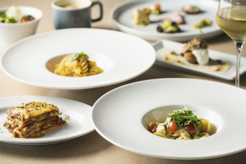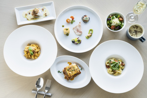 ランチメニューは、6種の前菜盛り合わせ・6種のパスタやリゾット食べ放題・特製デザート・フリードリンクで、泊港を一望できるハーバービューのレストランで、パスタやリゾットが食べ放題の新しいスタイルのランチです。