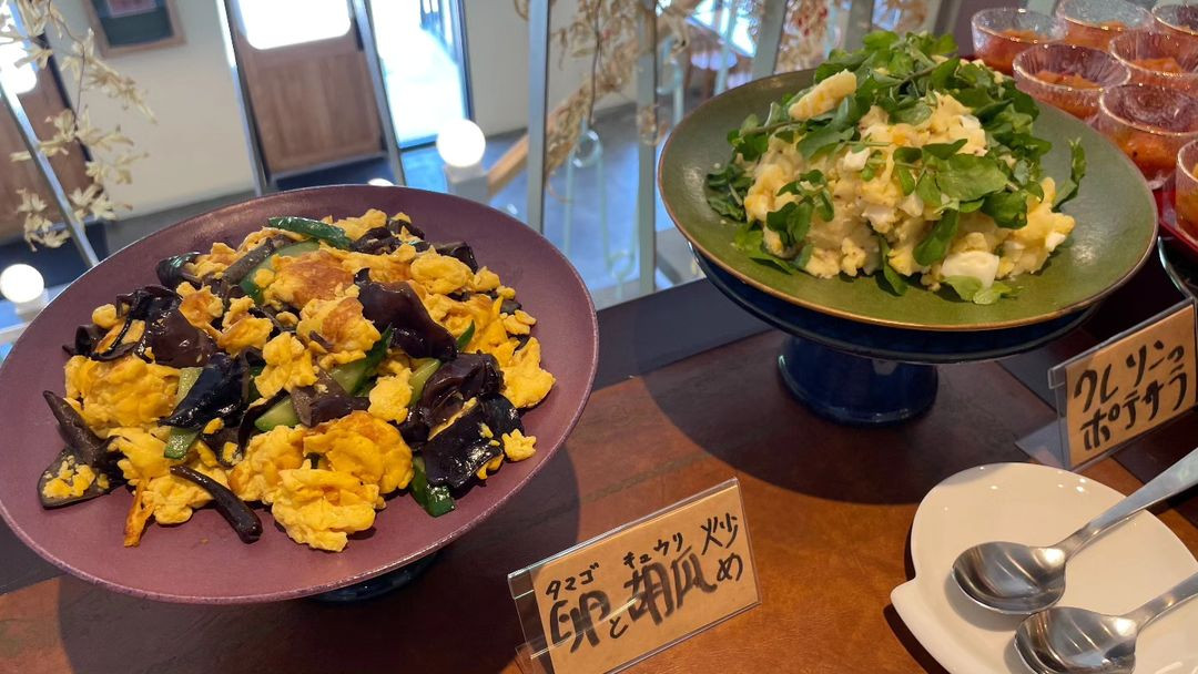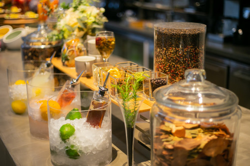 ランチはメインが選べるLillyセミブッフェです。メインは、海老ワンタン麺や麻辣(マーラー)カレーなど5種類。サラダバーは、新鮮な野菜とビーンズのオリエンタルサラダ、エスニックピンチョス、日替わりキッシュなど、アジアからヨーロッパまで世界を旅するように、彩あるライトミールを楽しめます。デザートは、大好評の香港揚げミルクパンやベトナムのローカルおやつ「チェ」など個性的です。