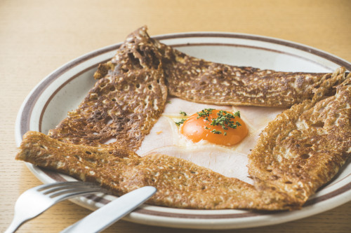 メイン料理の”定番商品” ガレット・コンプレット~自家製ハムを使った定番ガレット~は、シェフのこだわりが詰まったスタンダードなガレットです。また、月替わりメイン料理も楽しめます。