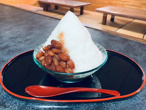 一粒一粒、厳選された北海道産の大正金時豆が使用されており、ふわふわな氷になめらかな食感がたまらない沖縄ぜんざい。