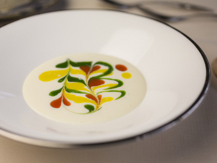 特におすすめしたいのが、スープに絵を描くアートスティックな「ピカソの好んだスープ」。