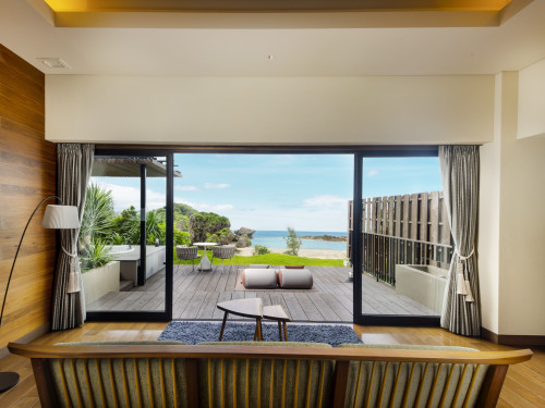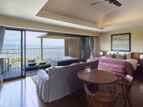 景色を眺めるのに最適なソファや食を楽しむテーブル、潮風を浴びながら微睡むのにぴったりなデイベッドなど、沖縄時間に溶け込むための設備がそろったお部屋なら、リラックスできること間違いなしです!
