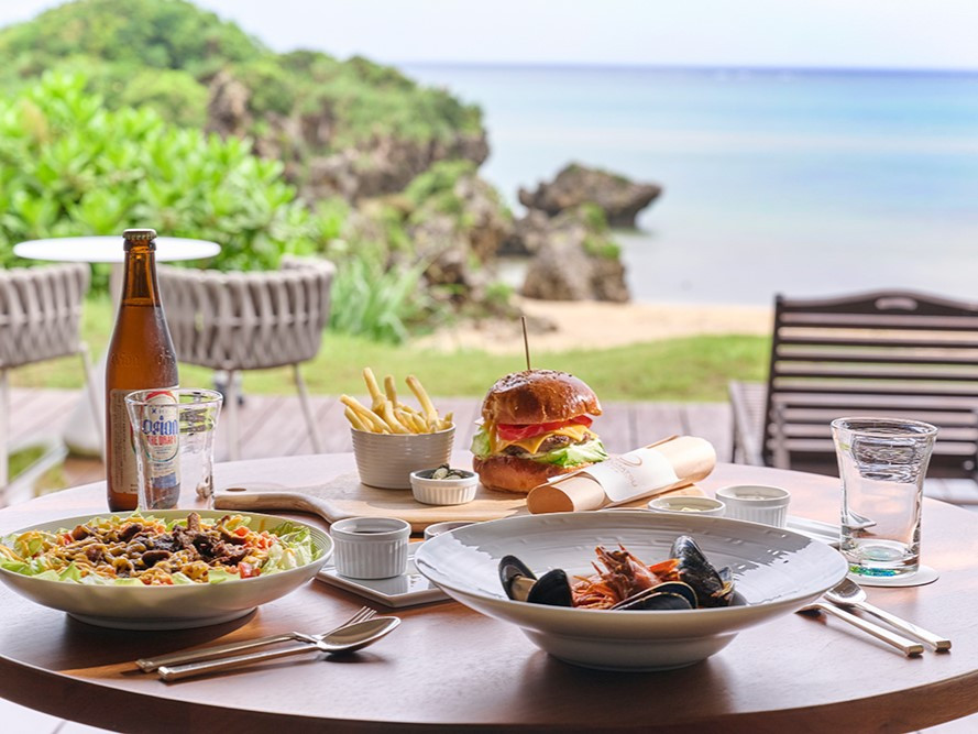 また、宿泊者のみ楽しめるカフェ&ルームサービスでは、沖縄料理やパスタなどを景色の良いテラスやカフェでのんびり味わえますよ。