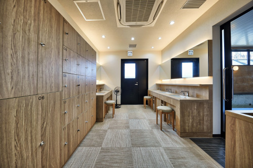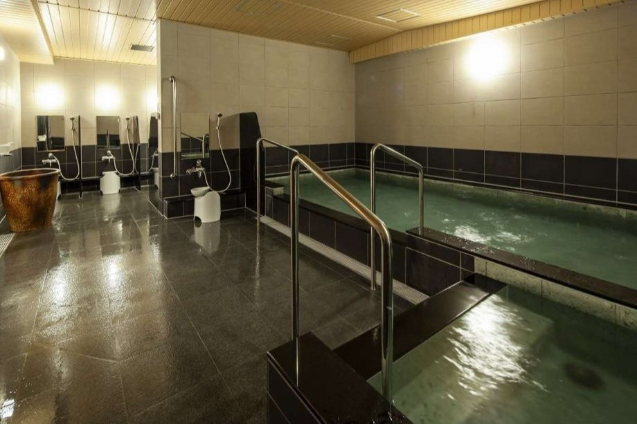 館内の2階にはサウナ付きの大浴場があり、大きな浴槽で旅の疲れを癒すことができます。大浴場は夜中の2時まで利用可能なため、夜遅くに宿泊した方でも入浴を楽しむことができます。また、男性用と女性用の各更衣室には個室シャワールームも備わっています。