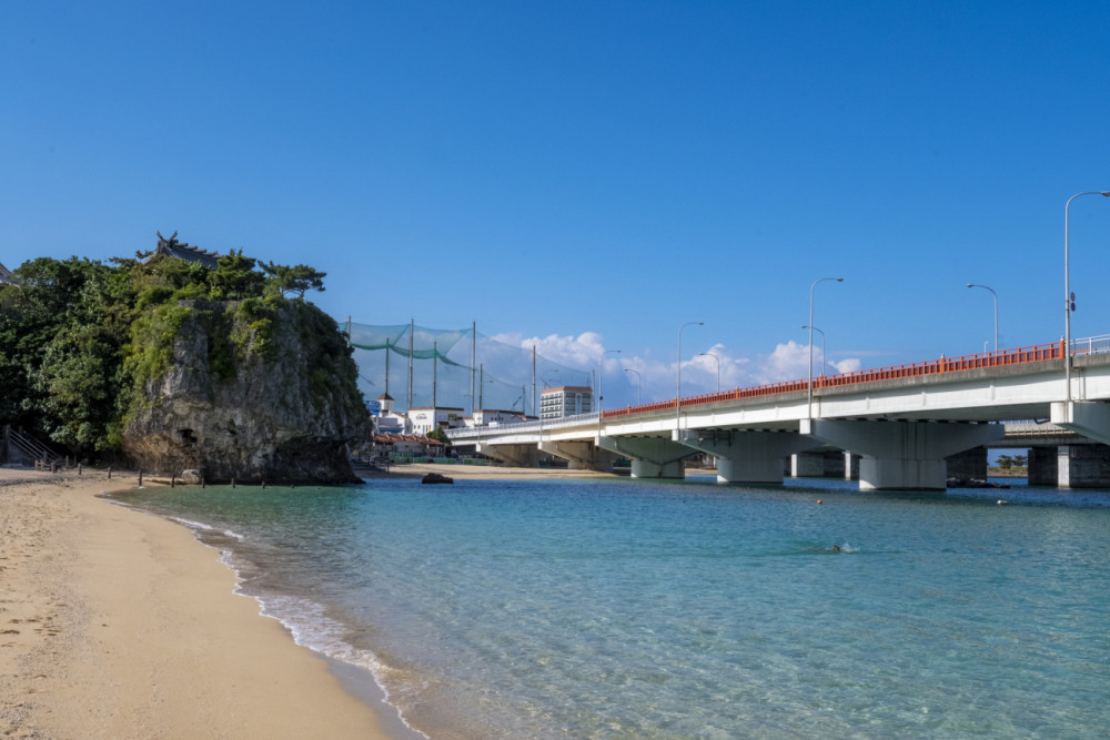「帰る前にもうひと泳ぎしたい」というときに立ち寄れるタウン派ビーチ。ここは那覇市唯一のビーチで、健康のために朝・夕に泳ぐ人や子ども連れで海を楽しむ家族など市民の憩いの場所にもなっています。