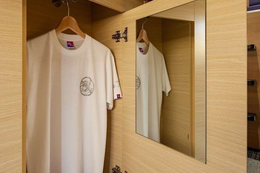 5階・6階とそれぞれの階に2室ずつ、腰掛け椅子が設置されたシャワールームが完備されています。また、キャビンや2・3人用ジャパニーズスタイルのお部屋がある階(3階~6階)には、化粧水や乳液、クレンジングなどが揃ったパウダールームもあります。