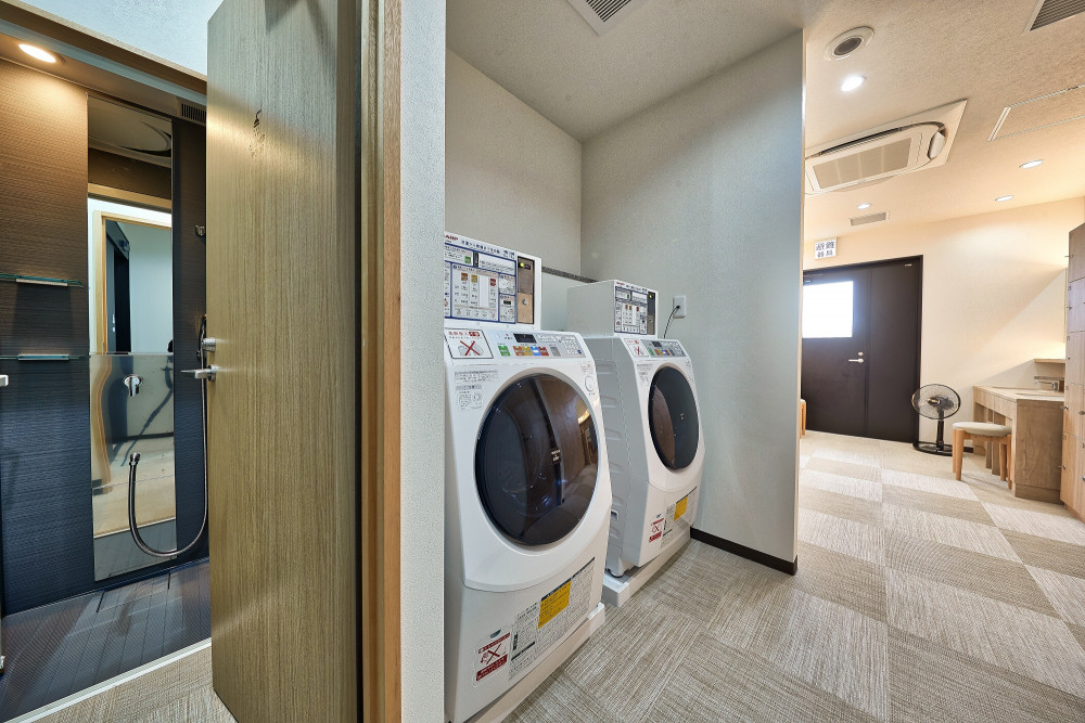 館内には、女性専用と男性専用で分かれている清潔感あふれるシャワールームやパウダールームがあり、各フロアには2台ずつコインランドリーが完備されています。シャワールームにはシャンプー、コンディショナー、ボディーソープが設置されており、パウダールームにはドライヤーやアメニティなども揃っています!