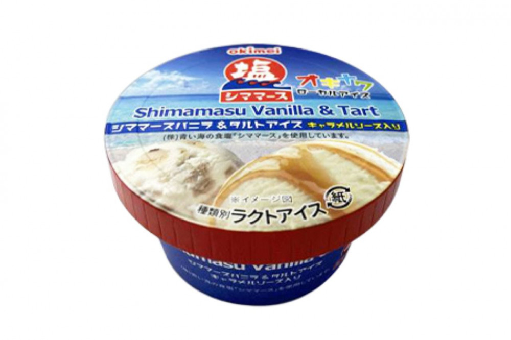 沖縄で長年愛されている沖縄の塩「シママース」とのコラボ企画商品。バタークッキーを使用した食べ応えのあるタルト風アイスに、ほろ苦いキャラメルソースを混ぜ込んだ塩バニラアイスを重ねた2層仕立てのアイス。
