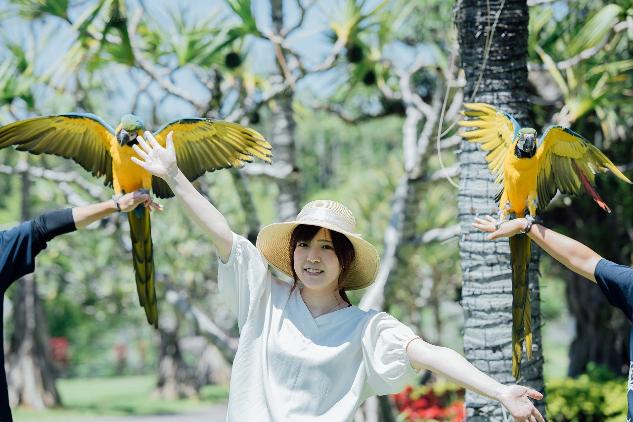 植物だけでなく、カピバラやリスザル、ヨナグニウマとの動物ふれあいや、バードパフォーマンスショーなど、園内で約 50 種類の動物たちともふれあえます♪