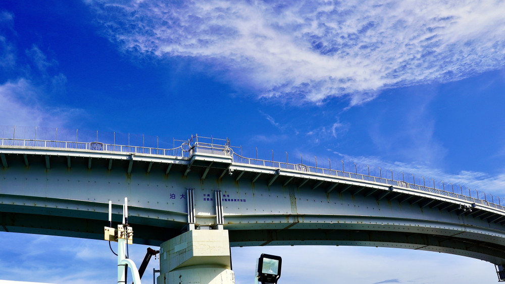 ヒロイン・古波蔵恵里の通学路のシーンで登場する「泊大橋」は、那覇市の西海岸に位置し、泊港に架かる全長1118mの大きな橋です。この橋は、若狭から上之屋を結んでおり、橋の上からは、那覇の海の玄関口である泊港から出発する船や、那覇市内の景色を一望することができます。