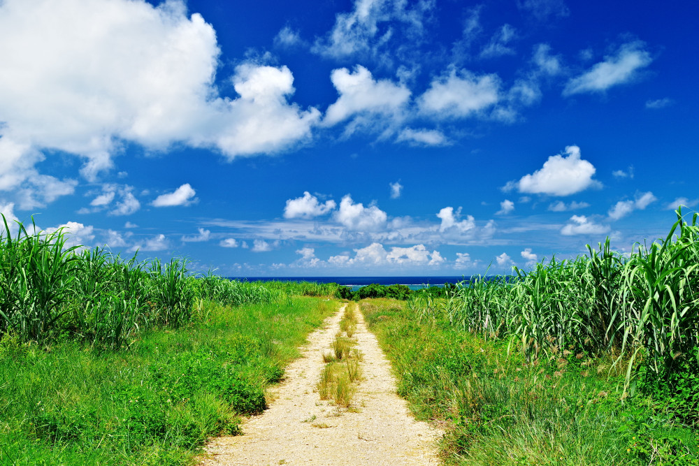 ヒロイン・古波蔵恵里たちの通学路として登場する「シュガーロード」は、サトウキビ畑や牧草地を突き抜ける真っ直ぐな一本道です。歩いてみると少し距離を感じるため、自転車で通り抜けるのがおすすめです。島の風を感じながら、心地よいサイクリングを楽しむことができます。