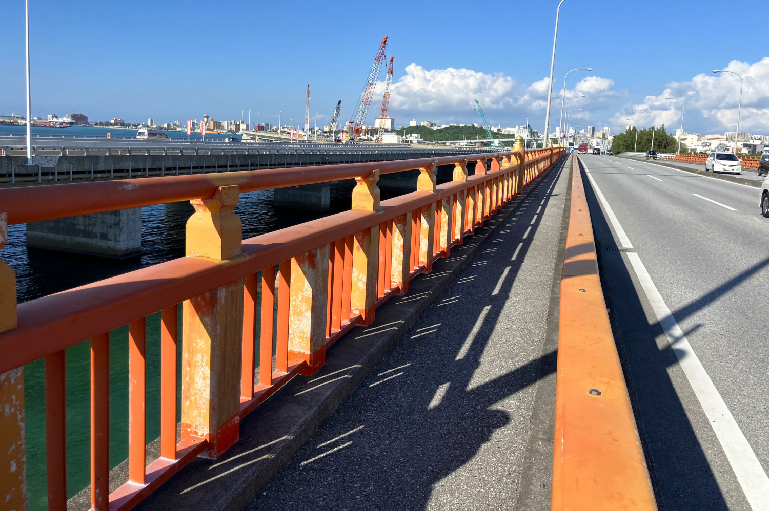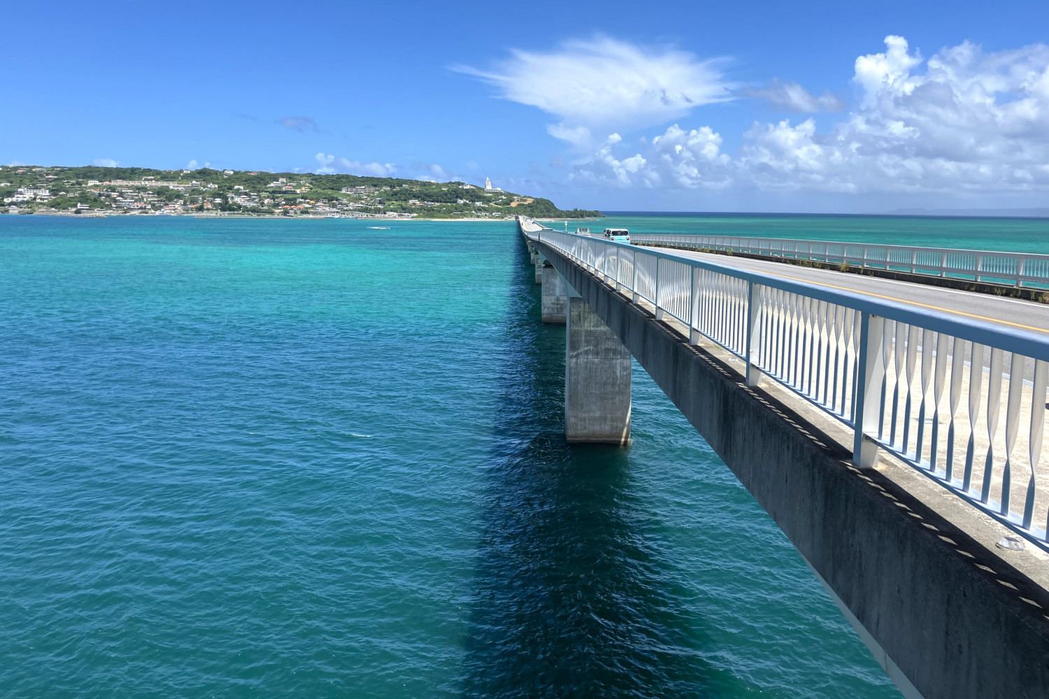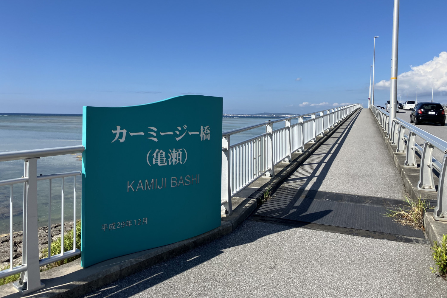 橋の両側にはエメラルドグリーンの海が広がり、車からは撮影できない景色を思い切り撮ることができます。