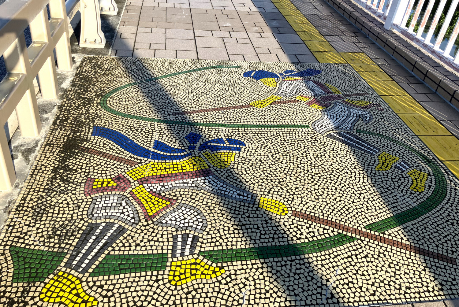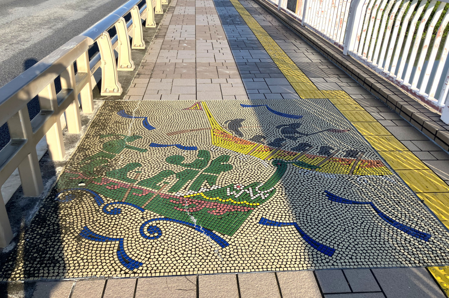 とよみ大橋の歩道には、沖縄らしい風景がタイルで描かれています。一つ一つ全部違うので、お好みのタイルアートを探してみてはいかがでしょうか。