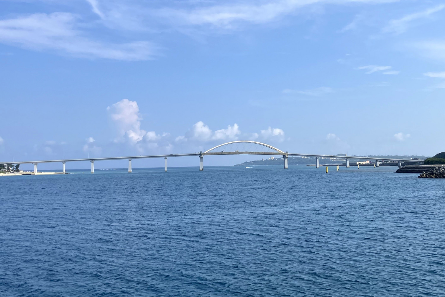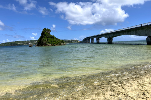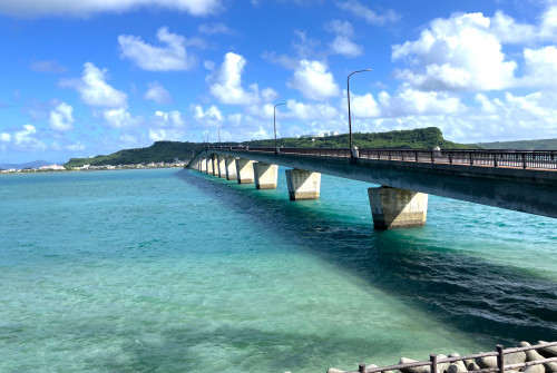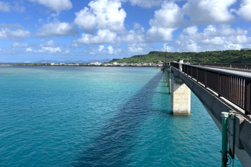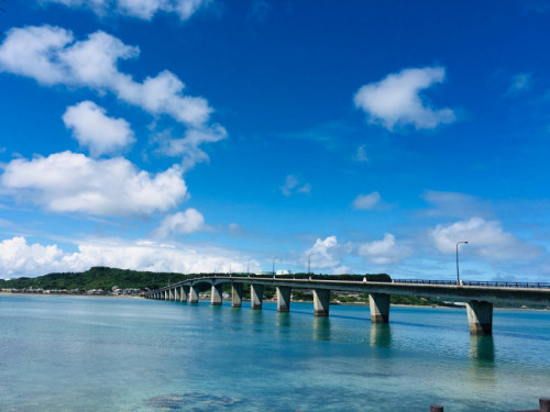 沖縄には多くの橋があります。 それらは、透き通るエメラルドグリーンや青い海の上を通っているものが多く、どの橋からも絶景を楽しむことができます。特に晴れた日には、海と空のコントラストが美しく、ドライブや観光の名所として人気です。