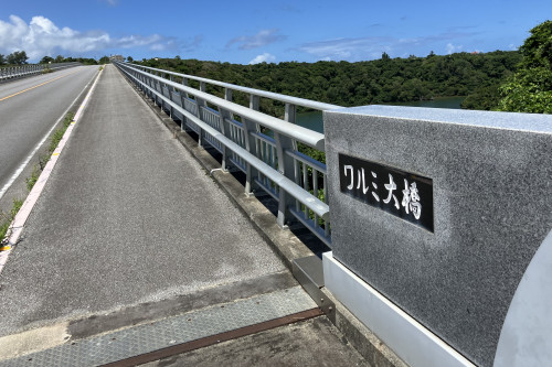 ワルミ大橋は、今帰仁村天底と名護市の屋我地島を結ぶ全長315mの橋です。2010年12月18日に開通し、日本国内でコンクリートアーチ橋として5番目に長い橋になります。橋の下にはワルミ海峡が広がり、自然に包まれたヤンバルの景色が一望できます。
