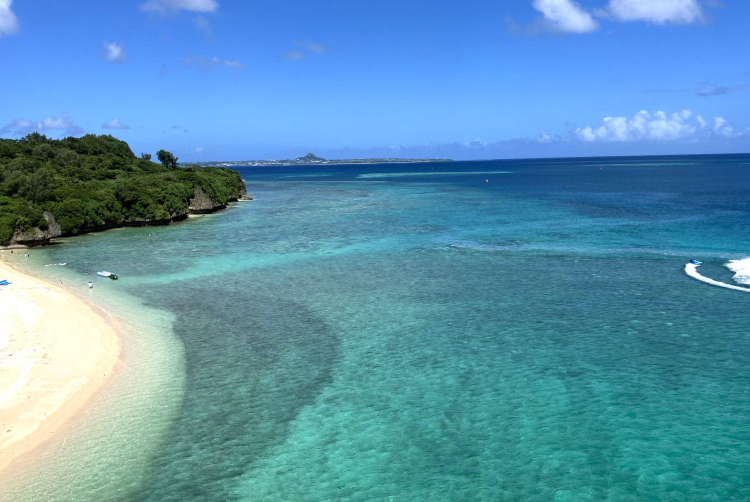 瀬底大橋は全長762mで、1985年に開通し瀬底島と沖縄本島が結ばれました。橋の下は、伊江島行きのフェリーの航路になっています。