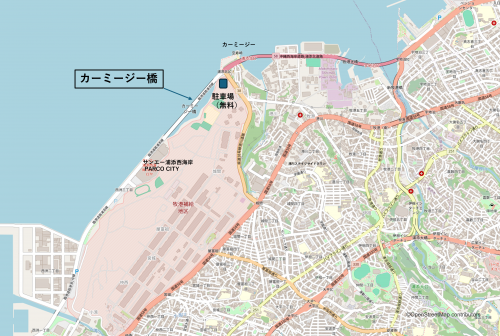 カーミージー橋は浦添市の西海岸にある橋で、2018年に開通した比較的新しい橋です。浦添市の西海岸にあるので、夕暮れ時には美しい光景がひろがります。