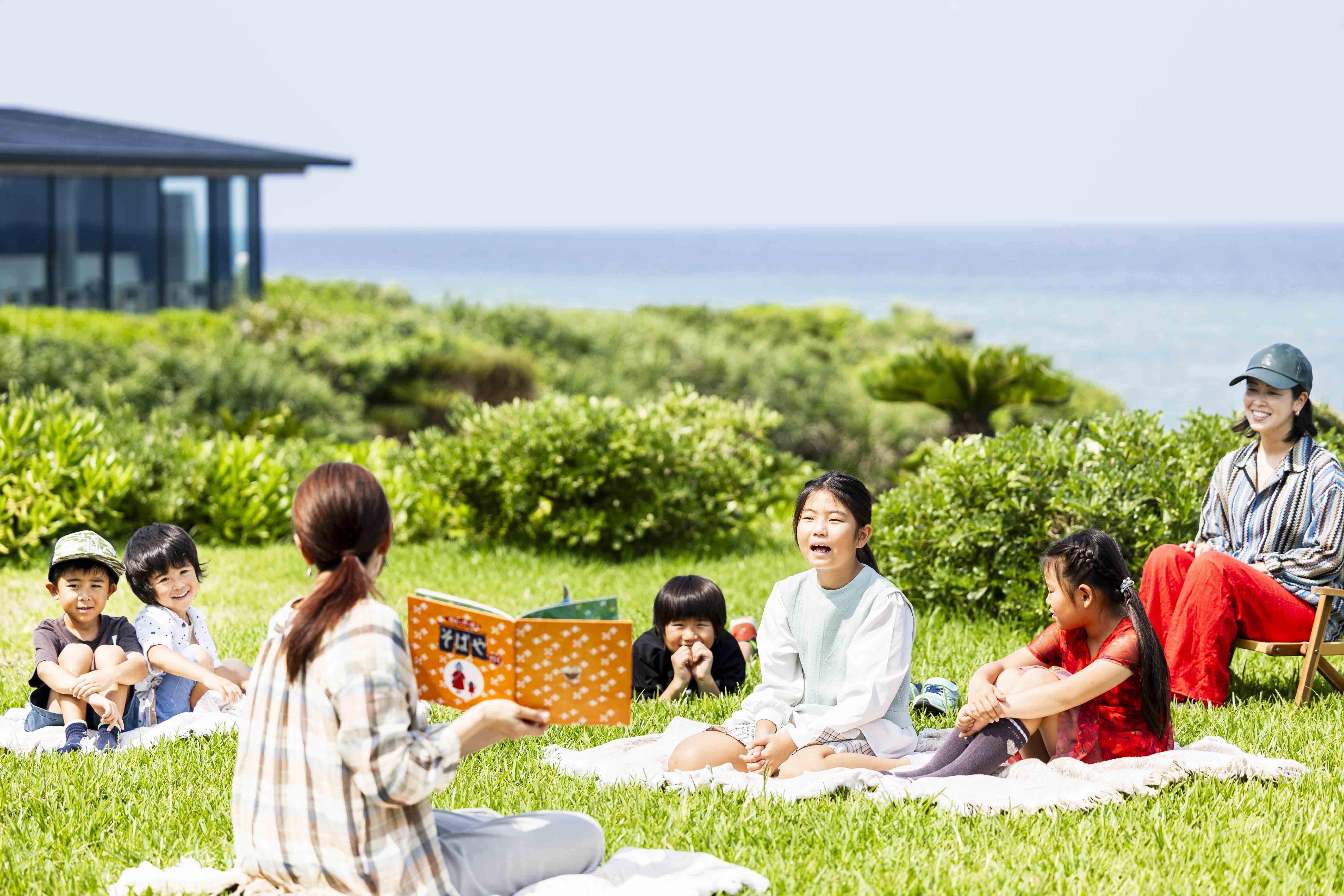 バンタカフェのあちこちに設置した本箱からお気に入りを選んで読書が楽しめるほか、沖縄の書店が揃うブックフェアも開催。心地よい秋風を感じながら、のんびり読書を楽しむ=よんなー読書が体験できます。