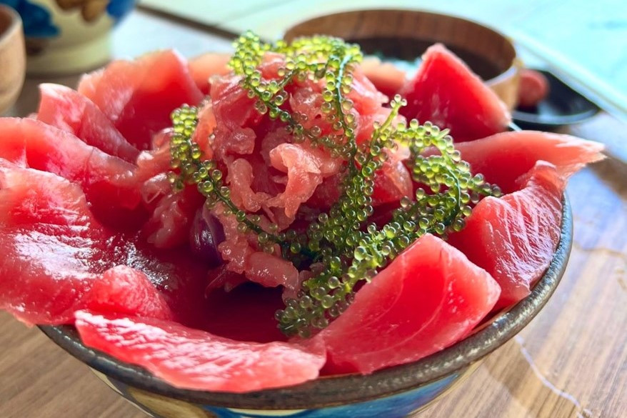 2022年10月にリニューアルオープンした「まぐろ屋みーかがん沖縄」は、まぐろ一筋30年の三高水産直営のレストランで、沖縄まぐろの迫力と、各部位の美味しさを、見て、食して、知ることができる一軒です。