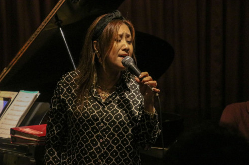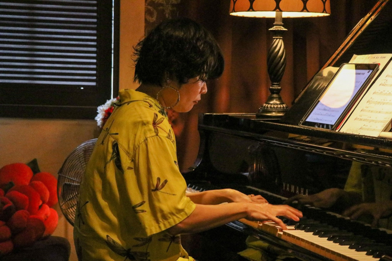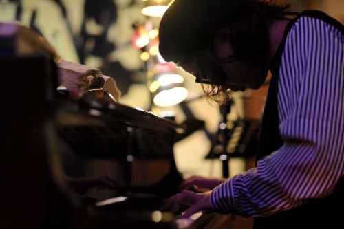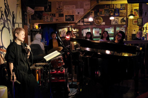 「グランドピアノがあるジャズのお店が栄町にあるギャップが面白いんじゃないかと思って」とオープンの経緯を話すのは、The Harvestmoon Jazzclub のオーナーでもあり、ボーカリストを務めるMitchy。グランドピアノは正面ドアからは入れられなかったため、台風接近中で天候が良くない中で、クレーンで吊って窓から搬入したという。