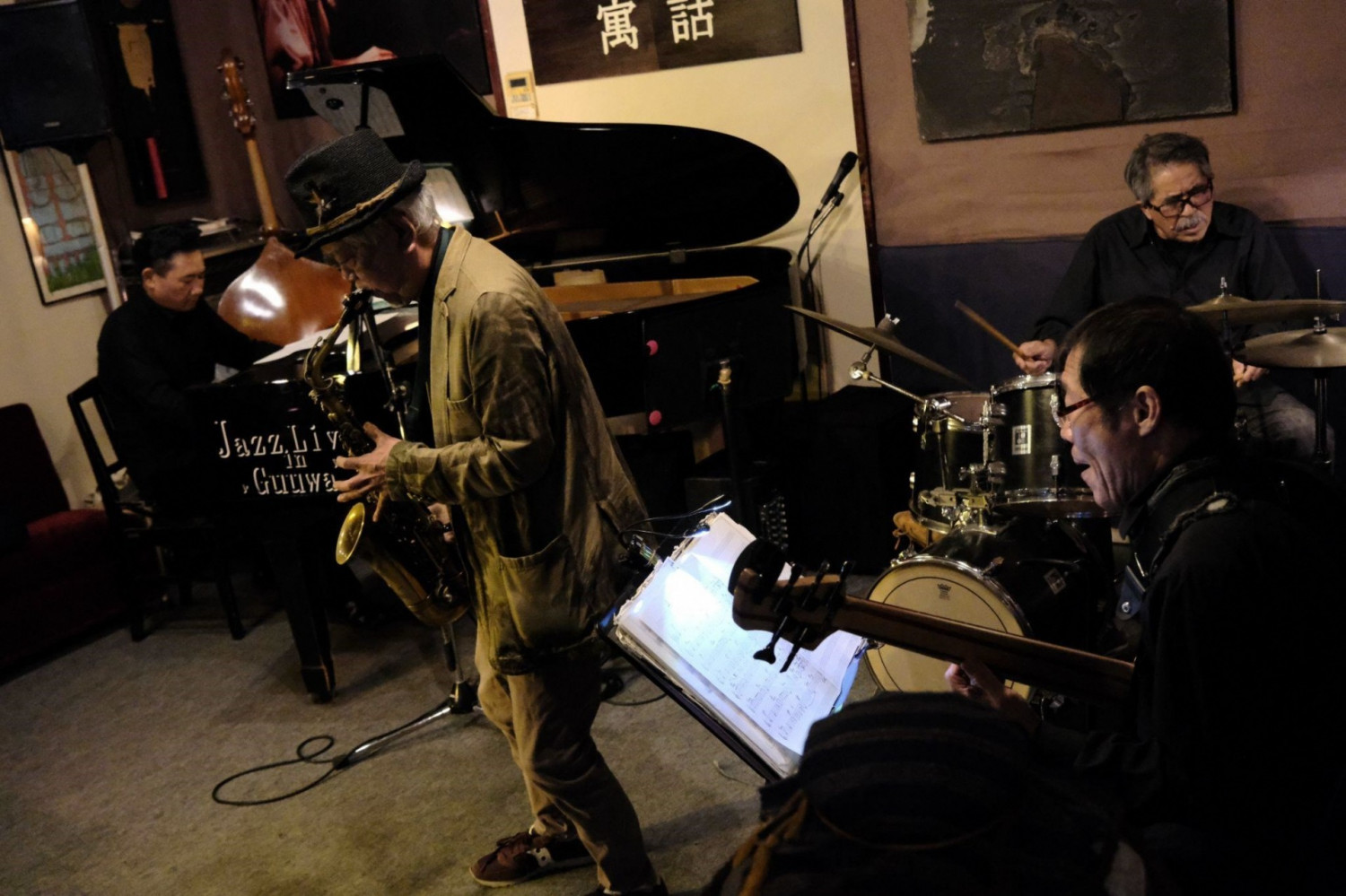 ジャズライブイン寓話は、沖縄を代表するジャズピアニストとして活躍した故・屋良文雄さんが1979年開いたジャズバー。普段は息子の朝秋さんを中心としたメンバーがパフォーマンスしています。