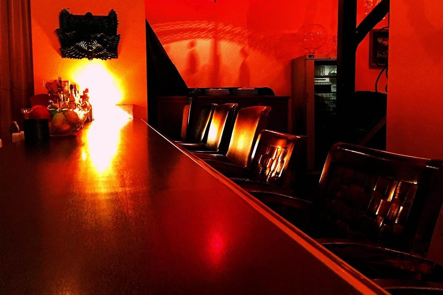 Parker’s Mood Jazz Clubの店内は、オーセンティックかつムーディな佇まい。インテリアや照明のスタイルから、かなり落ち着いたアダルトな空間が広がり、入店した途端に夜の深い時間に飛び込んだような心地になります。