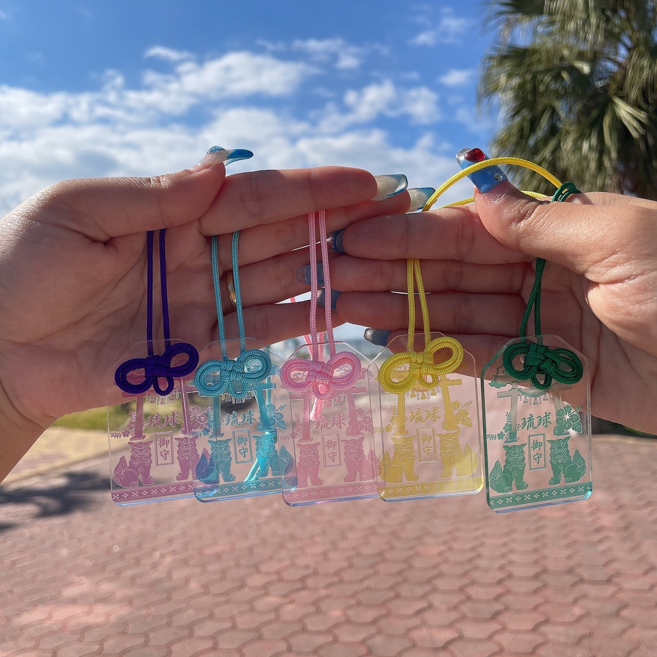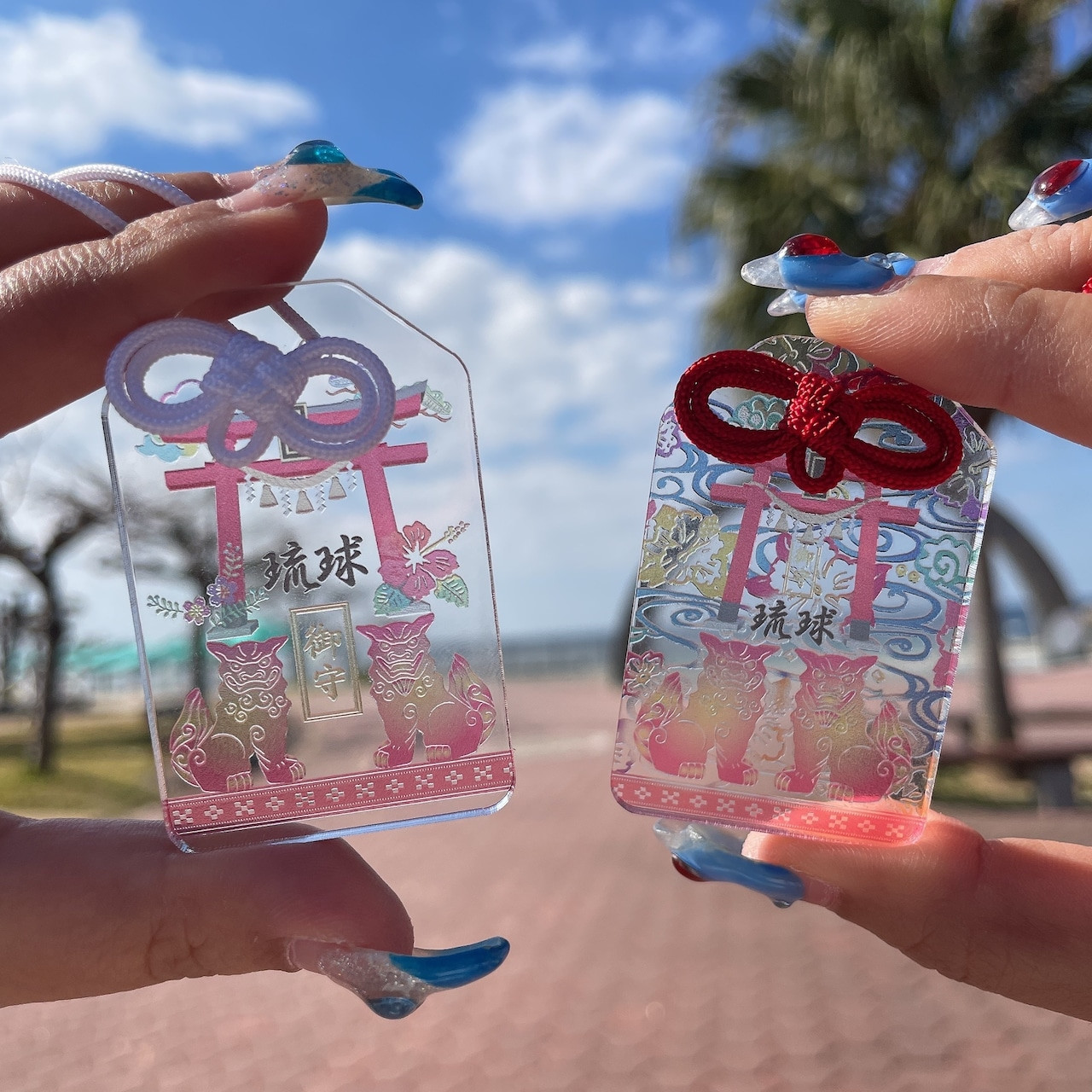 「未来が見通せる」ご利益があるとSNSで話題の、キラキラと輝く透明なお守り。沖縄の龍神様に祈願済みとのことで、復縁、安産、出世、心や身体の健康など様々な願いを豊富なカラーの中から選ぶことができます。シーサーやサングワー(沖縄で魔除けの意味を持つお守り)の形で、より沖縄らしさを表現。透けるデザインが新鮮で、目を引くこと間違いなしです!季節や老若男女問わず、お揃いや贈り物にもオススメです。