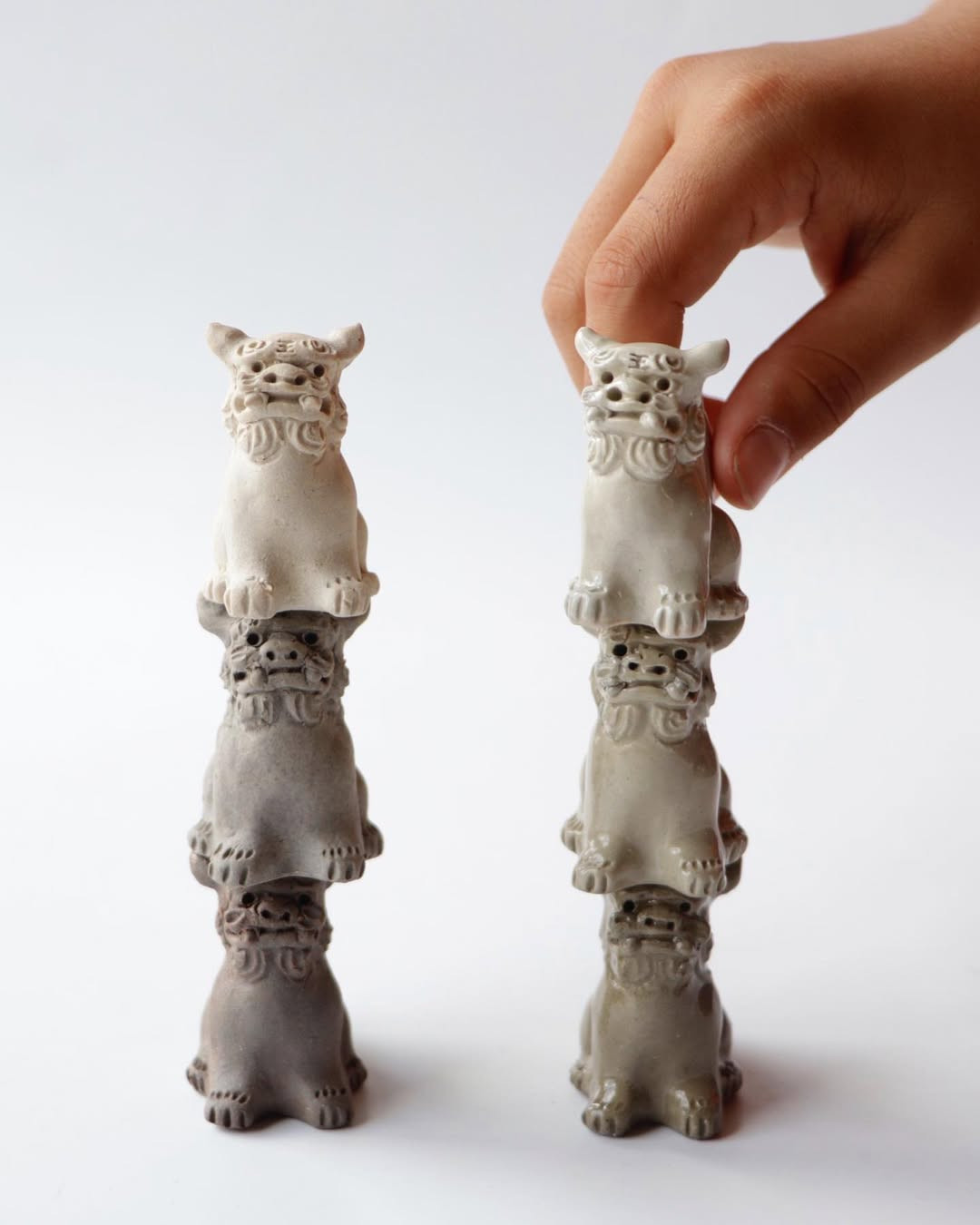 やちむん(沖縄の焼き物)で高い人気を誇る「育陶園」。育陶園史上最小の極小サイズ、「ミクロシーサー」が誕生しました。高さ約5cmという極小サイズながら、細部にまでこだわった本格的な造形。育陶園シーサーのトレードマークでもある額の「王」の印も、最小の印鑑で細かく丁寧に表現しています。艶なし(マット)と艶あり(グロス)があり、それぞれ表情の違う、味わい深い存在です。ギフトにもおすすめパッケージ付きで、旅の思い出やギフトにも最適です。
