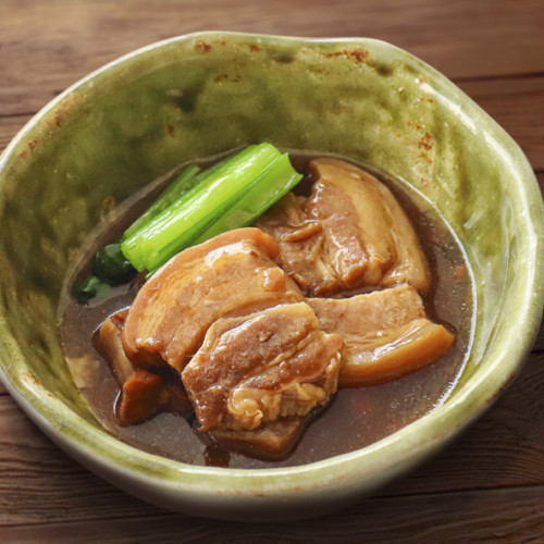 「レンジで簡単やわらかラフテー」は、豚の三枚肉(皮付きのバラ肉)を黒糖と醤油で煮込んだ本格的な味わいです。