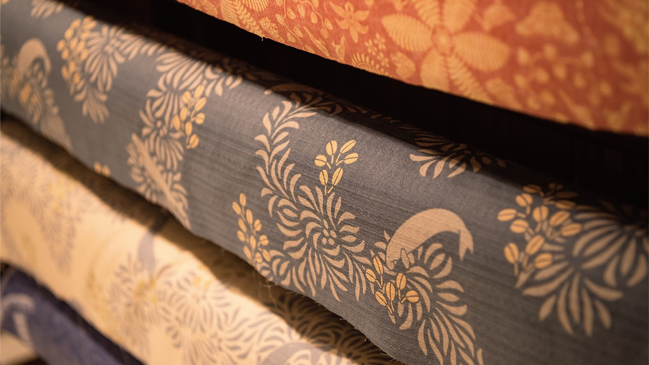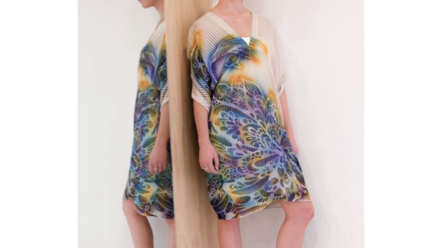 眩しいほどの沖縄の強い太陽の光、目を奪われる鮮やかな花、そしてどこまでも続く青い海や空。沖縄の素晴らしい自然にインスピレーションを受け、『taion』のテキスタイルを描いているのは画家のLee yasumitsuさん。リゾート感あふれる大胆な柄を身にまとえば、ラグジュアリーな非日常感に包まれ、バカンスを楽しむにはもってこい。ゆったりと、ゴージャスな時間を過ごすのに一役買ってくれるアイテムです。