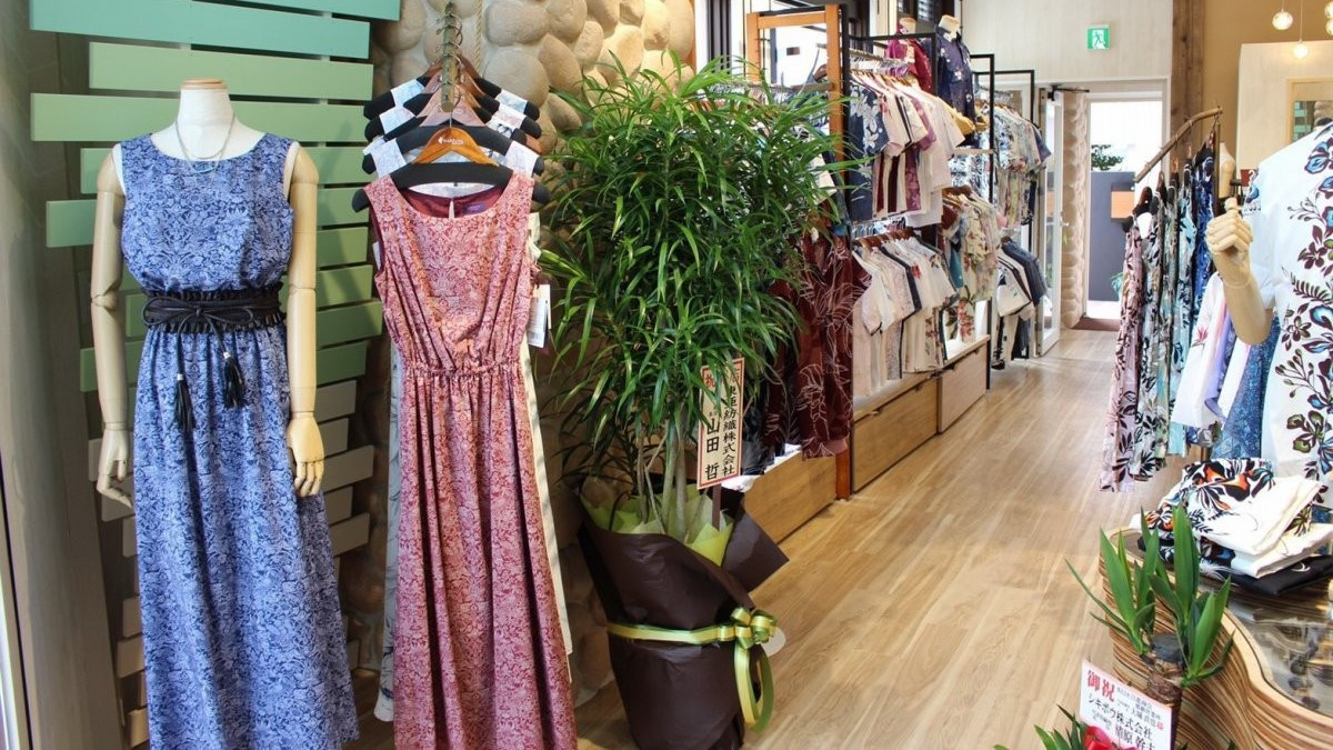 着るだけでパワーを貰えるような鮮やかな色合と風をはらむ緩やかなデザインのドレスが沖縄の女性を中心に幅広い層に支持され、現在は沖縄県外・海外にも進出中。年2回のコレクションに合わせて新たなアイテムが次々生み出されていくので、商品との出会いは一期一会。沖縄滞在中の1着として、また旅の後もパーティや女子会などに着ていけば注目を集めること間違いなし!クローゼットを開けるたび沖縄で出会った風景や気持ちの高まりを思い出す、そんな1着はいかがですか?風呂敷などの小物類もお土産におすすめです。