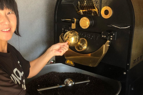 ジャーマンスタイルのビールと自家焙煎珈琲の店「ウォルフブロイ」を、ドイツ生まれのご主人、ウォルフラム・オーピッツさんと経営する。ご主人はクラフトビールをつくり、由香さんは珈琲の豆選び、焙煎を担当。「いろいろな地域の水を試す中で、首里の水がとてもおいしかった」のが、首里にお店を構えた理由のひとつとのこと。琉球王国時代、泡盛が造られていた酒処、首里ならではの水を使い、美味しいビールとコーヒーを提供する。