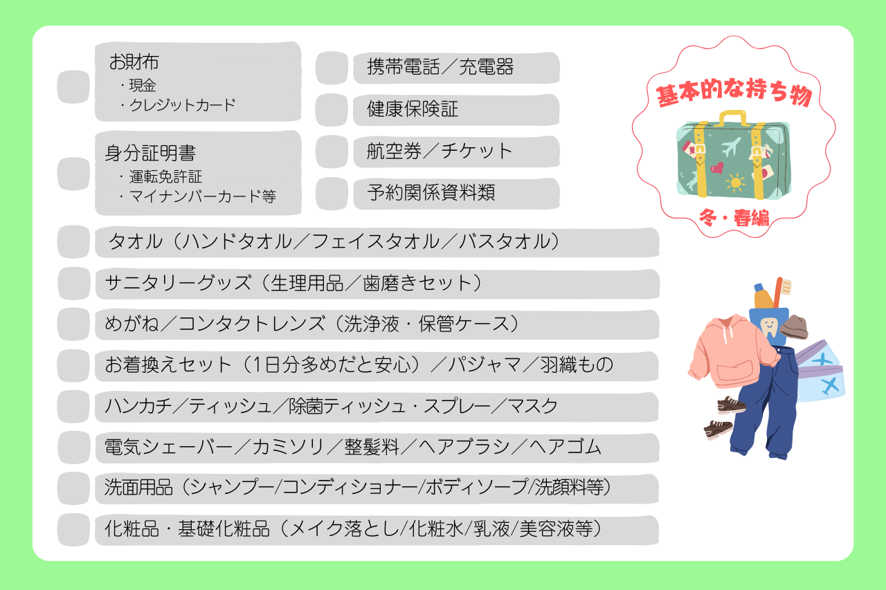 ・出発ギリギリまで使用しているものは、詰め忘れがないよう、出発当日のやることリストを作っておくと◎