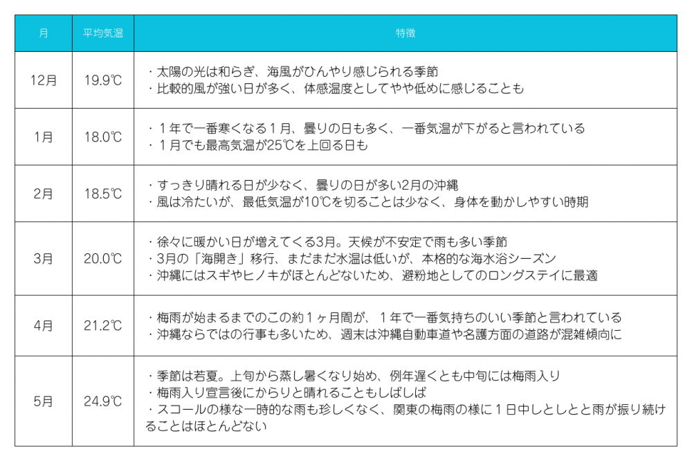 沖縄は他県とは異なった温暖な気候のため、暖かいのか寒いのか、服装はどうしたらいいのか…といった悩みがあるはず。