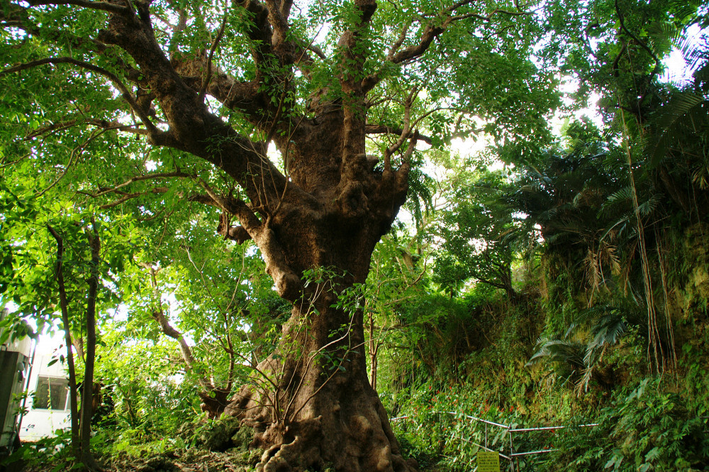 戦災を奇跡的にまぬがれた、推定樹齢200年のアカギの大木。推定樹齢200年以上ともいわれる6本のアカギで、国の天然記念物にも指定されています。