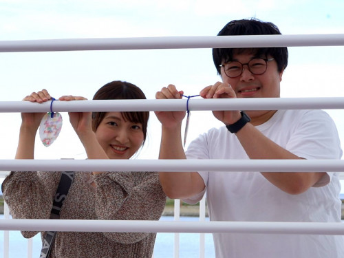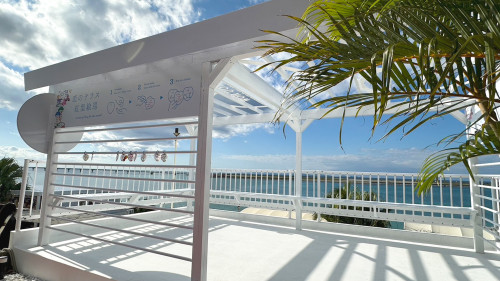 多くの来島者によるハートの形の貝をあしらった“恋のおまじない”「恋の絵馬」が飾られている「恋のテラス」を増設し誕生した、こちらの施設では、新たに沖縄古来の「紅型(びんがた)」風模様の新デザイン絵馬が登場するとのこと!