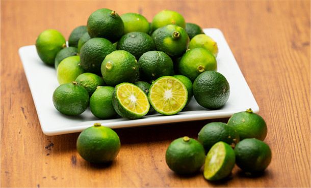 方言で「シー(酸っぱい)」、「クヮーサー(食べさせる)」の意味を持つ、みかんのような柑橘フルーツ。沖縄の太陽と山の恵みをたっぷり浴びて育ったきゅんと酸っぱい果実は、刺身や焼き魚に絞ったり、ジュースやゼリーに加工したり、と沖縄らしい味に一役買っています。
